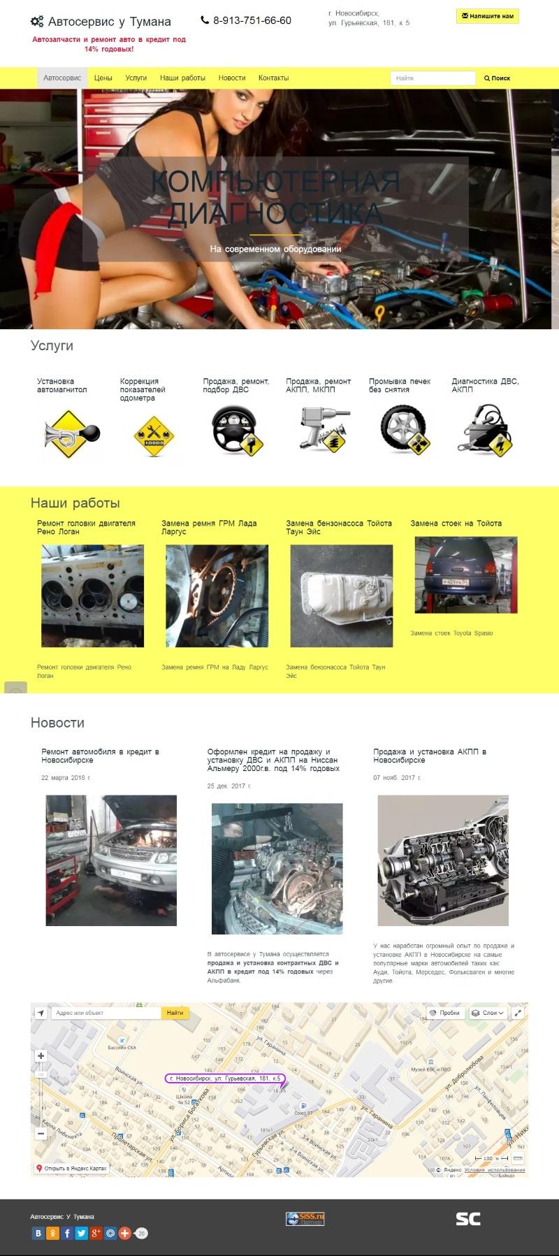 Компания SiSS-CMS.ru создала красивый сайт для автосервиса «Автосервис у Тумана» в городе Новосибирске.